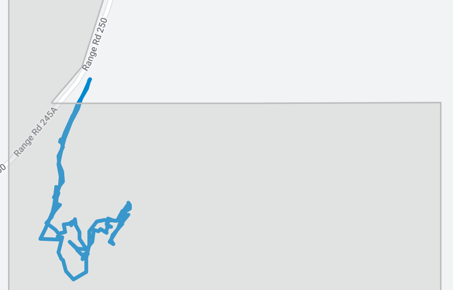 | Comments | Q67 | Three tires (picture enclosed) were seen dumped on the west side of RR 245A. GPS Coordinates: 54.23042 N, 113.59557 W |