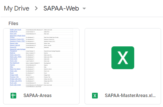 Currently, SAPAA stores the above data fields in one of three locations: the Google Map, and two spreadsheets.