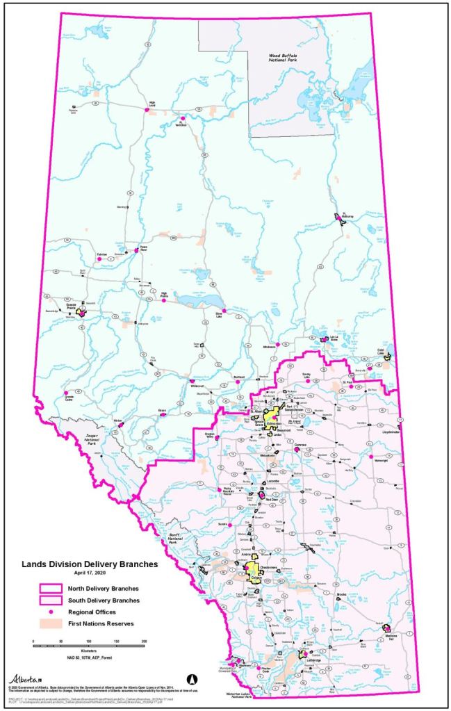 North and South. For the purposes of the Steward Program, the Province has been divided into two halves; the boundary of the two regions is roughly the North Saskatchewan River watershed (NSR). Note that these are approximate guidelines. There is overlap between the Athabasca and NSR watershed in these divisions. Further, the Lands Division has 30 regional centers, with 14 in the South and 16 in the North.
