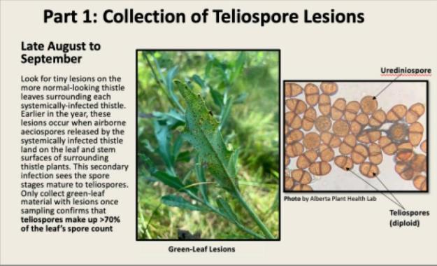 A summer 2025 initiative is to train County and Municipal District Agricultural Field staff to begin looking for natural thistle rust infections and to locate and document any they find. This could see the beginnings of County and Municipal District inventories of thistle rust collection sites.