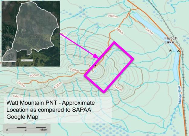 Located about 25 km northwest of High Level, west of the Mackenzie highway, this PNT occupies the southeastern slope of Watt Mountain.